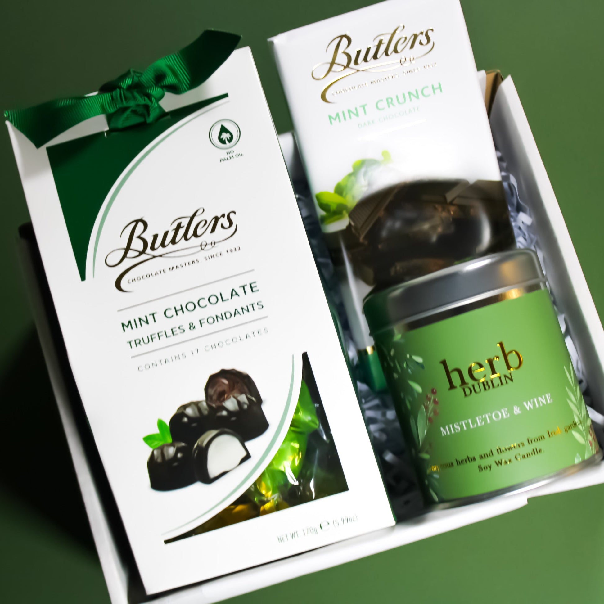 Treat your loved one to the perfect after dinner treat with these luxurious Irish chocolates and a beautiful Chistmas candle.