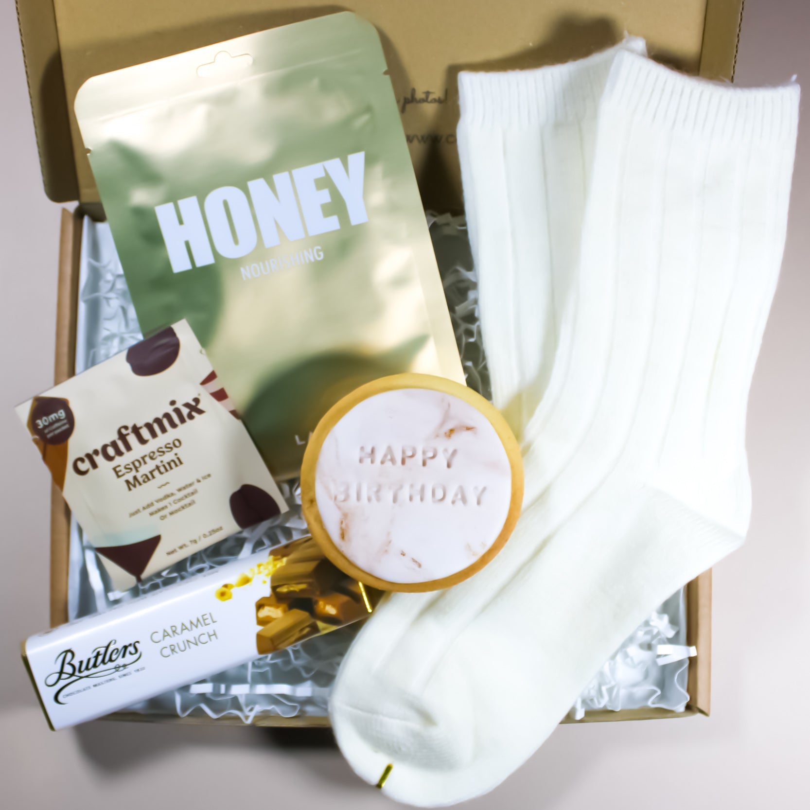 Treat your loved one to the perfect cosy night in to celebrate their birthday with this beautiful gold & white themed care box.