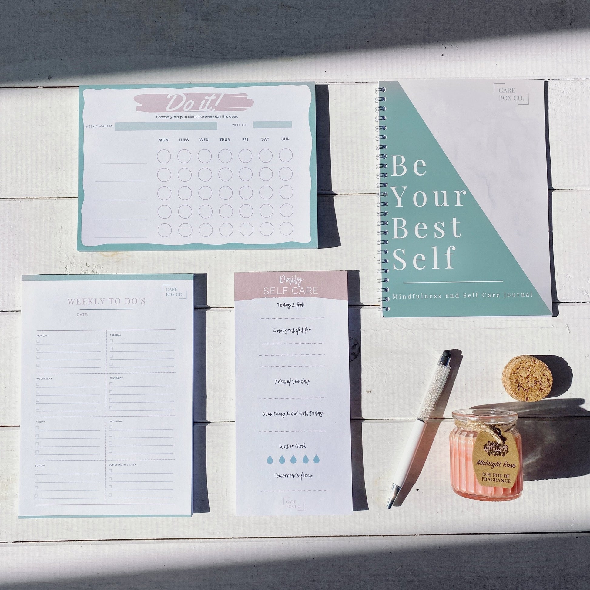 This 50 page A5 notepad is custom deigned to help you keep track of your short term weekly goals and create healthy sustainable habits for your everyday life.
